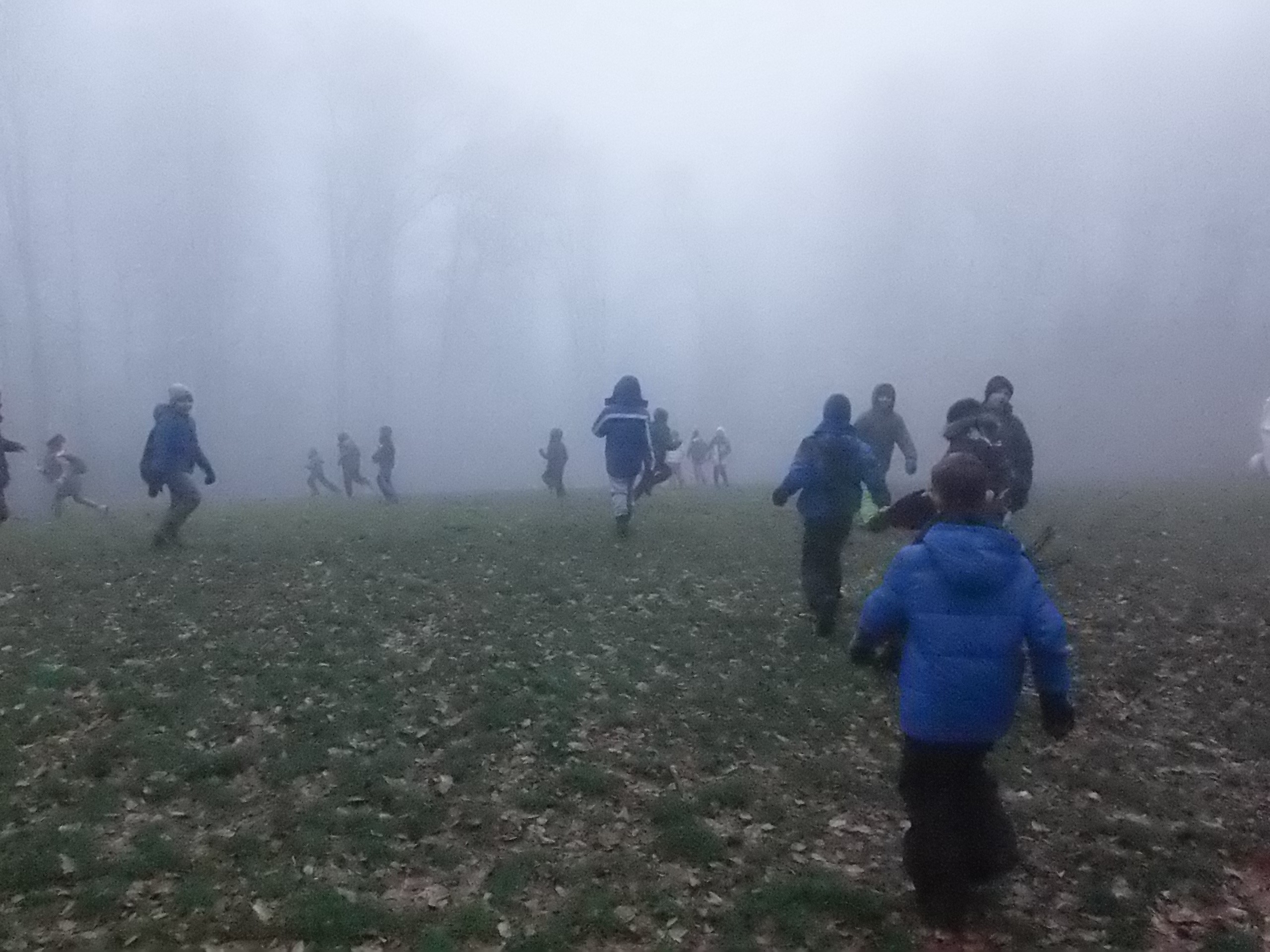 Nakon ručka smo se uputili prema livadi u neposrednoj blizini našeg Doma. Dječji osmjesi, uzdisaji, pitanja, orila su se šumskim puteljcima, sve dok nismo stigli na odredište. Krenuli smo u istraživanje prostranstva livade i smišljali igre. Unatoč hladnoći koja nas je pratila cijelim putem, nismo se dali omesti u iskorištavanju vremena koje nam je omogućeno. Magla se u pojedinim trenutcima poigravala s nama i bila nam je suigrač u našim igrama. Dok je nama to bilo zanimljivo, učiteljice nisu mogle sakriti svoje zabrinute izraze lica, pažljivo su nas pozivale i okupljale kako bismo se uputili prema Domu, najavljujući nove aktivnosti, učenje i večernju zabavu.