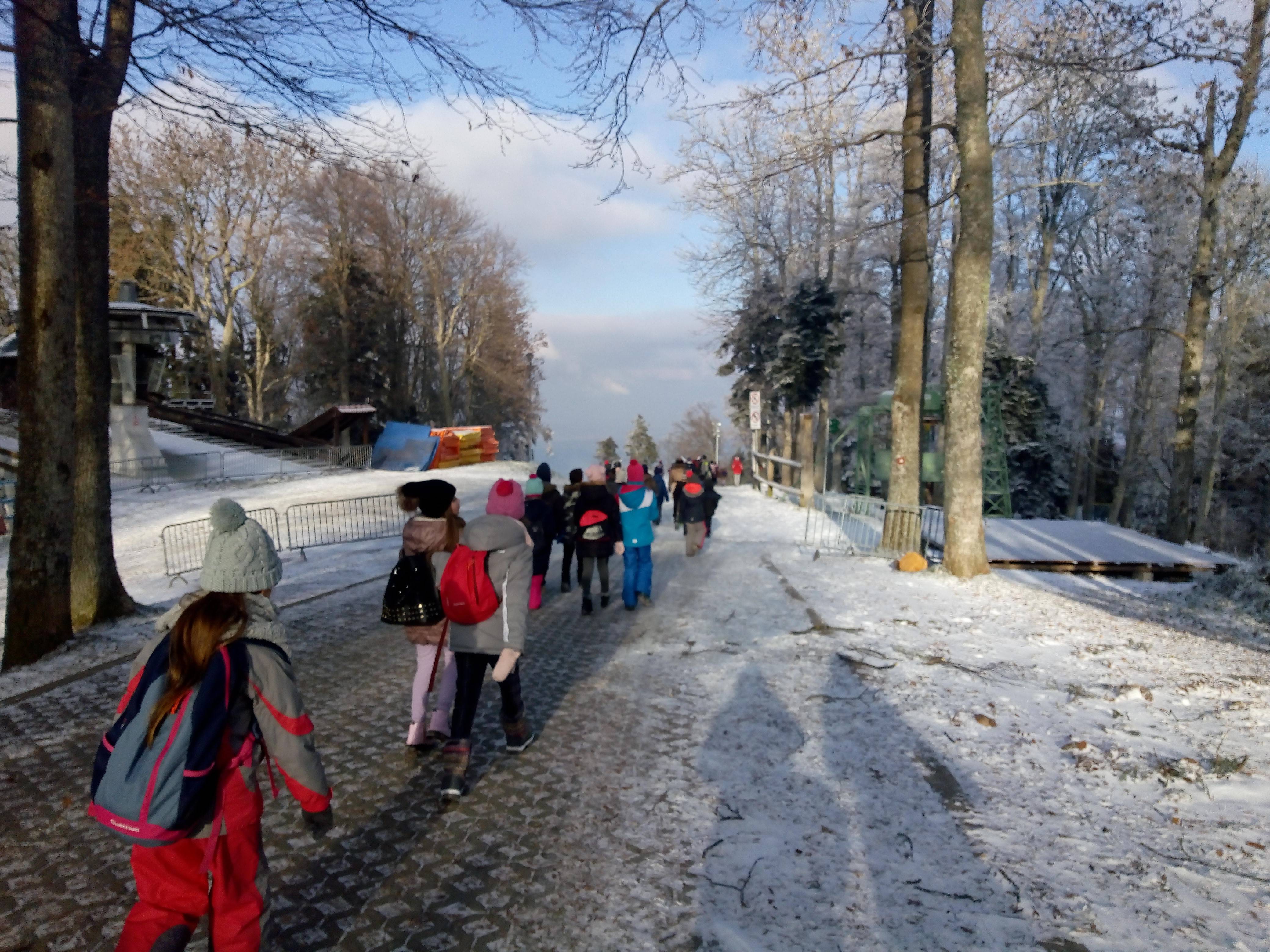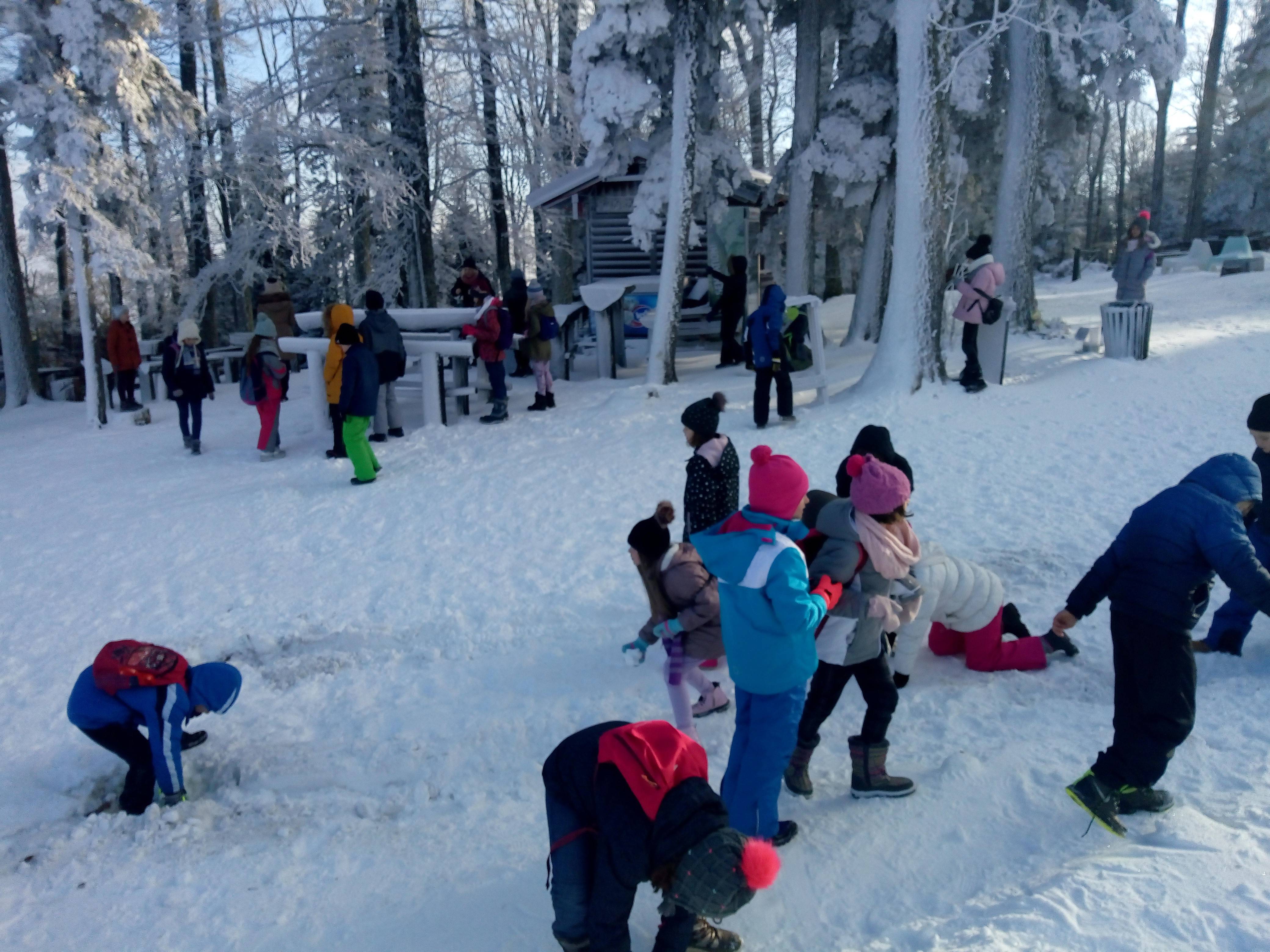 Nakon ručka smo malo predahnuli te se zaputili u šetnju prema vrhu Medvednice – na Sljeme. Sunce nas je putem pratilo, a na vrhu smo imali i priliku uživati u snijegu. Doduše umjetnom, no za nas je doista to bilo nevažno, najvažnije je bilo osjetiti pod prstima pahulje stvarajući grude, valjajući se po snijegu, skrivati se ispod grana prekrivenim snježnim pokrivačem.