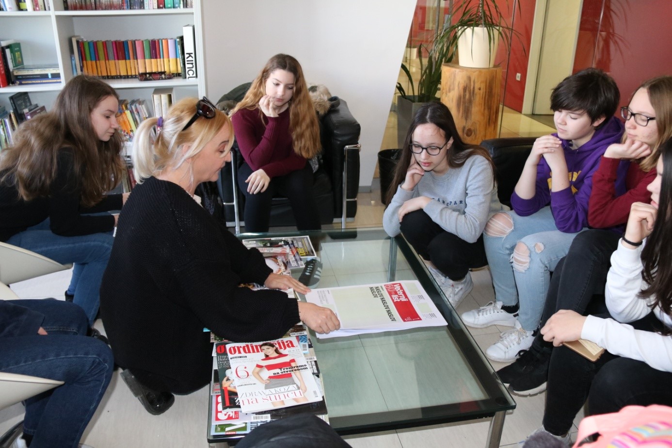 Gospođa Melita Redžić Savičić , urednica dječjeg lista „Radost“ i gospodin Mislav Šimatović, zamjenik glavnog urednika Večernjeg lista u radioničkom dijelu posjeta upoznali su naše učenice kako nastaju novine, što je sve potrebno istražiti prije pisanja članaka te su ih iznenadili najavom kako će one danas napraviti svoje dnevne novine pa su kao i svi drugi novinari dobile svoj deadline.